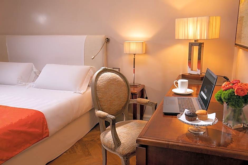 Air-conditioned room with free Wi-Fi and an LCD TV. Features a classic design with wood floors and elegant furniture.